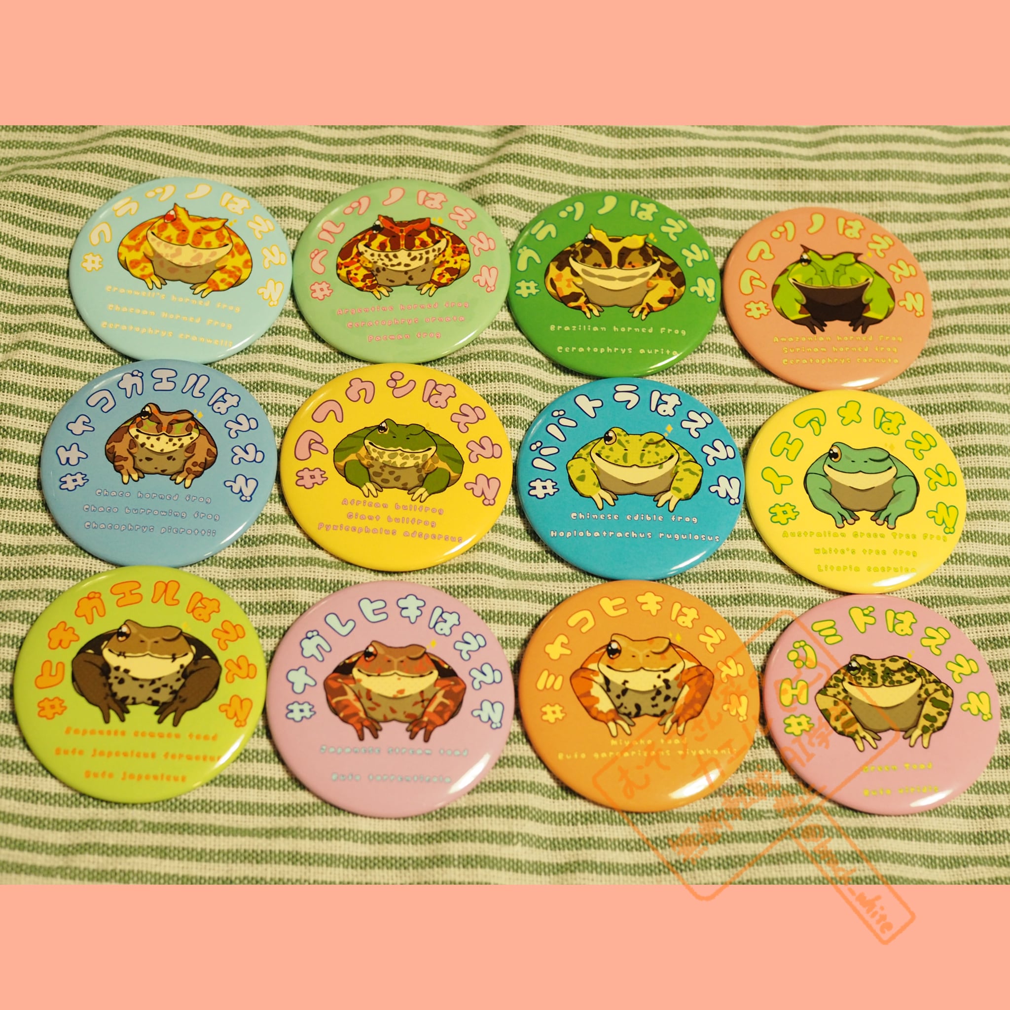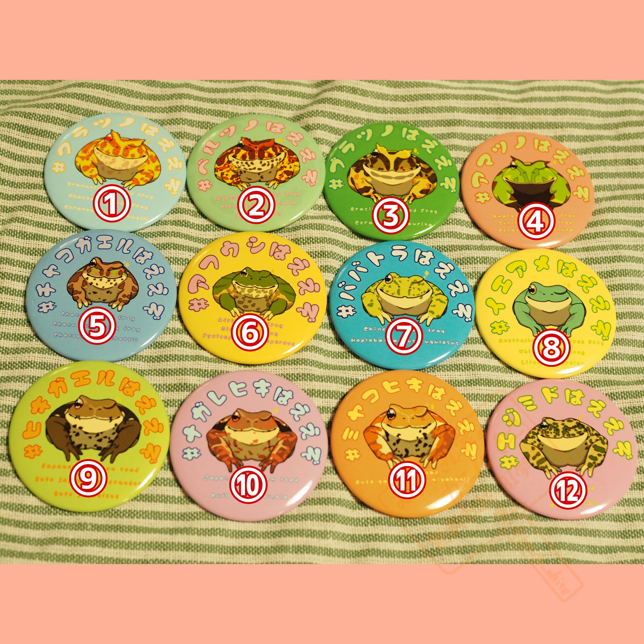 ええぞ缶バッジは、あなたの推しカエルを選んでさりげなくアピールできる缶バッジです。