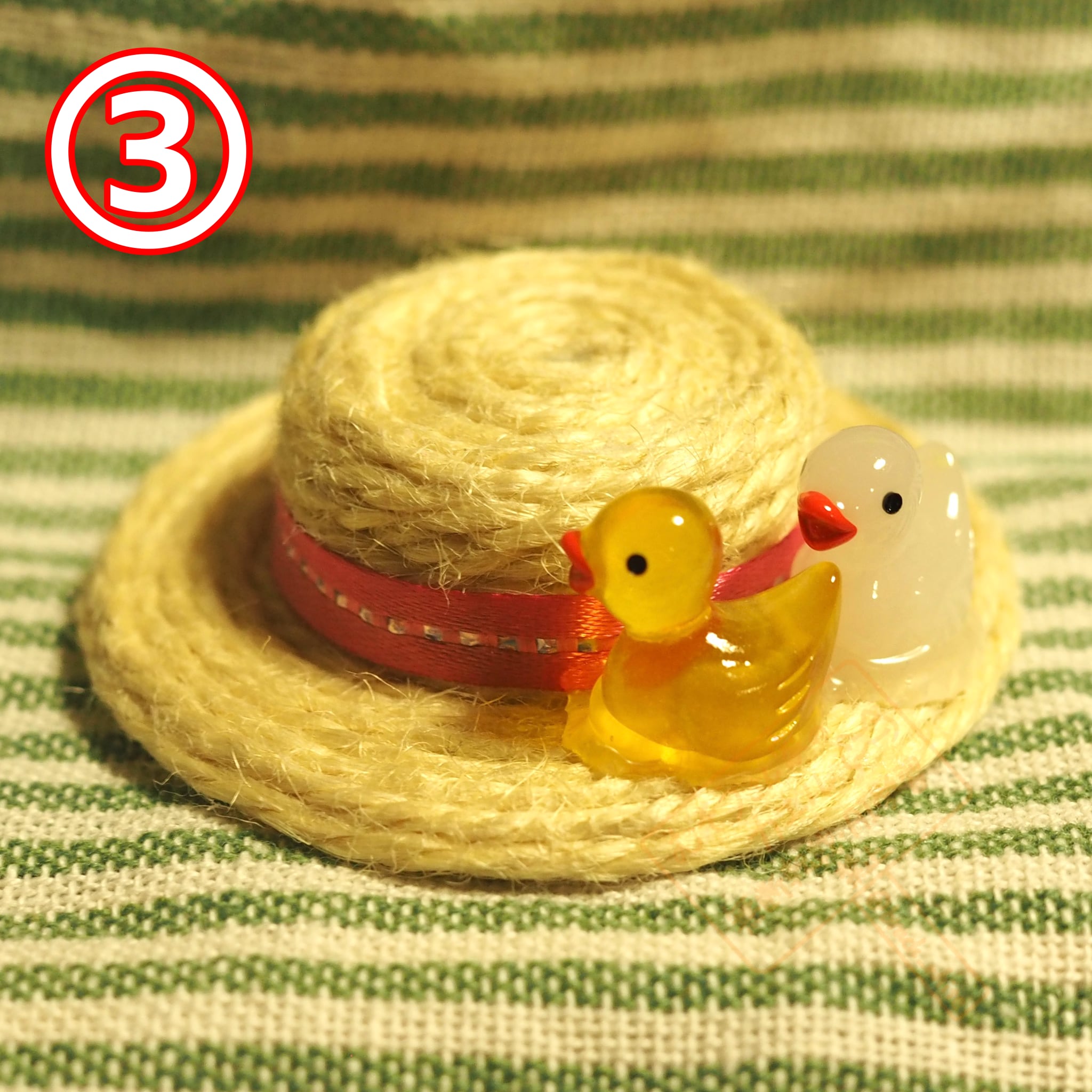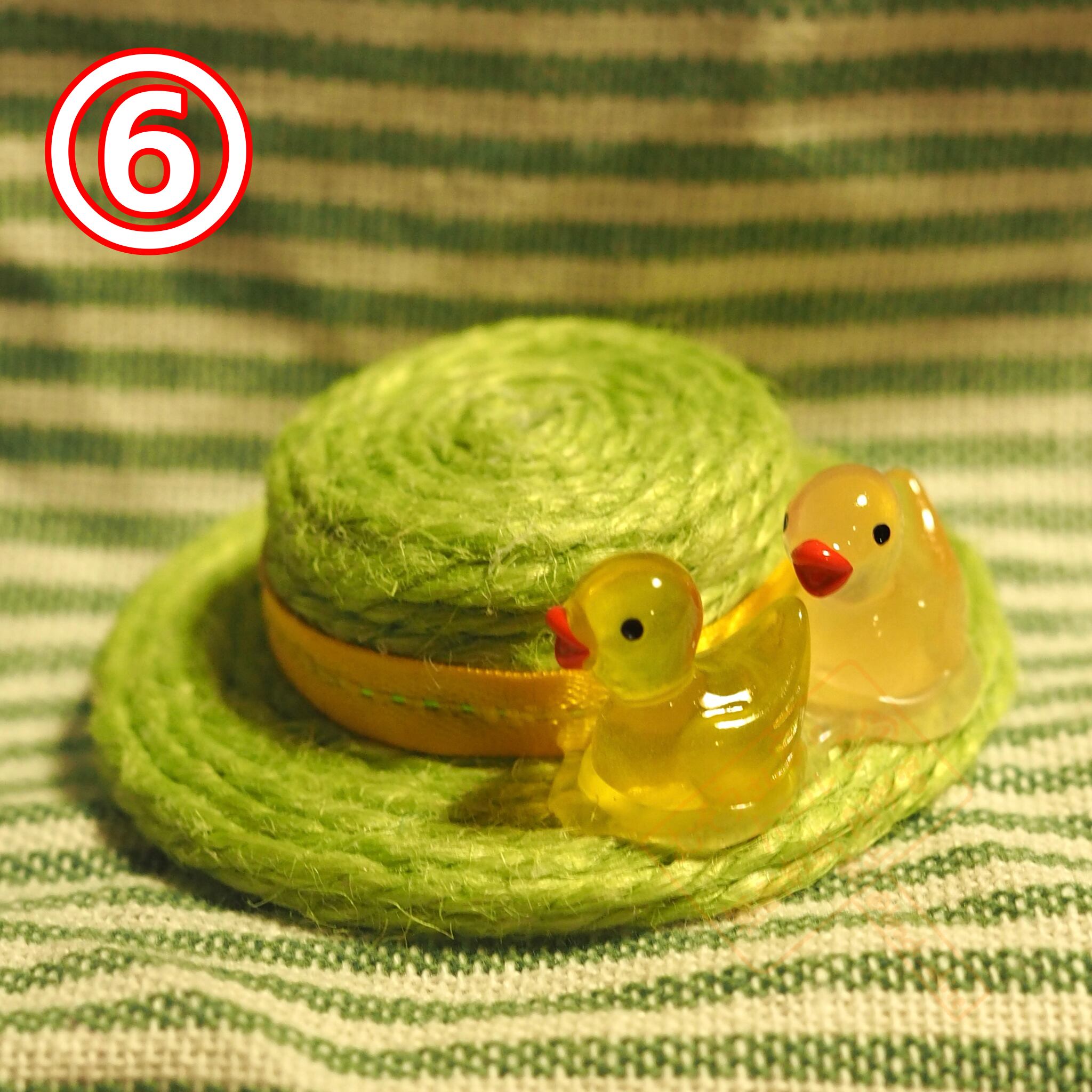 飾って良し、小動物に乗せて良しのかわいい麻紐でできたミニチュアサイズの麦わら帽子です。