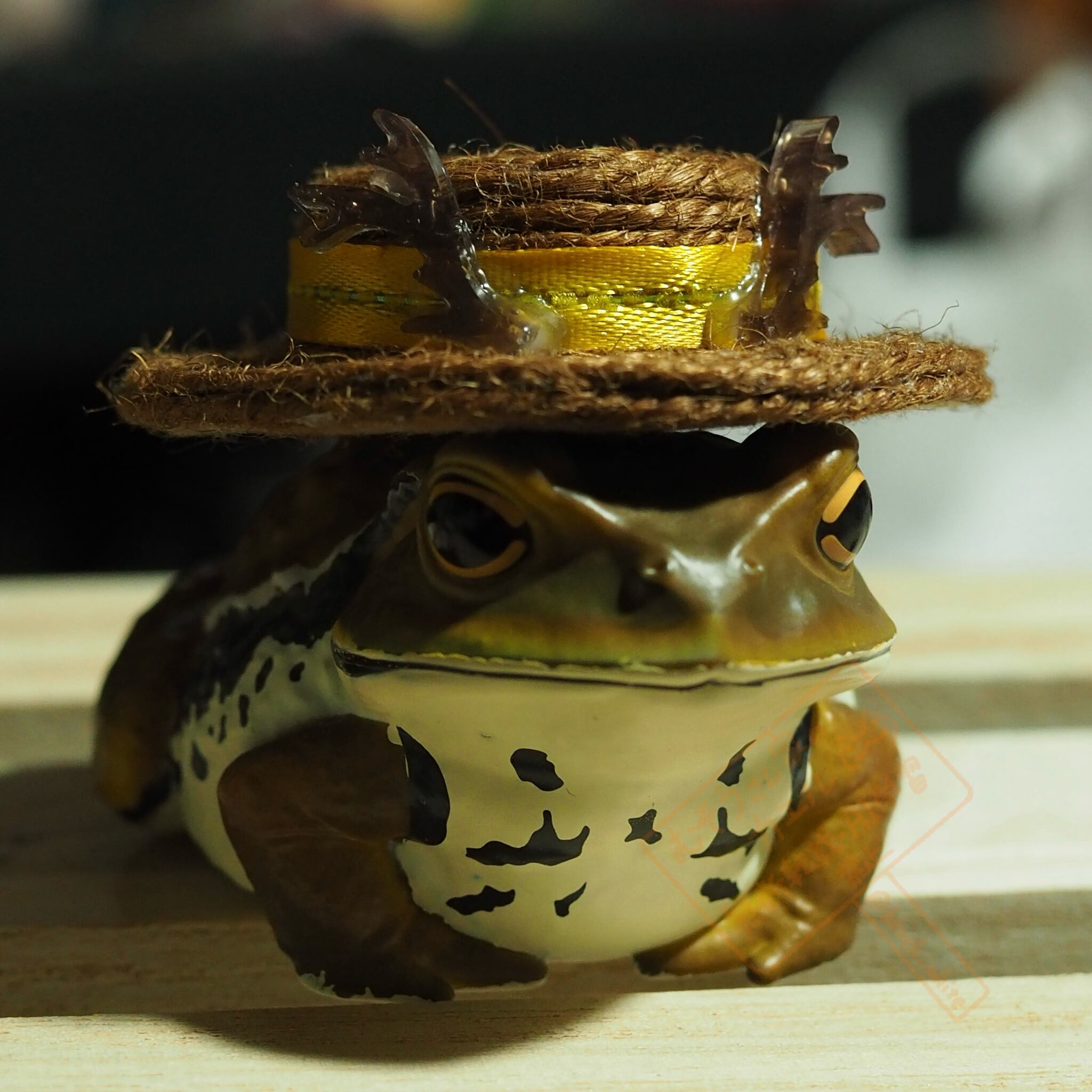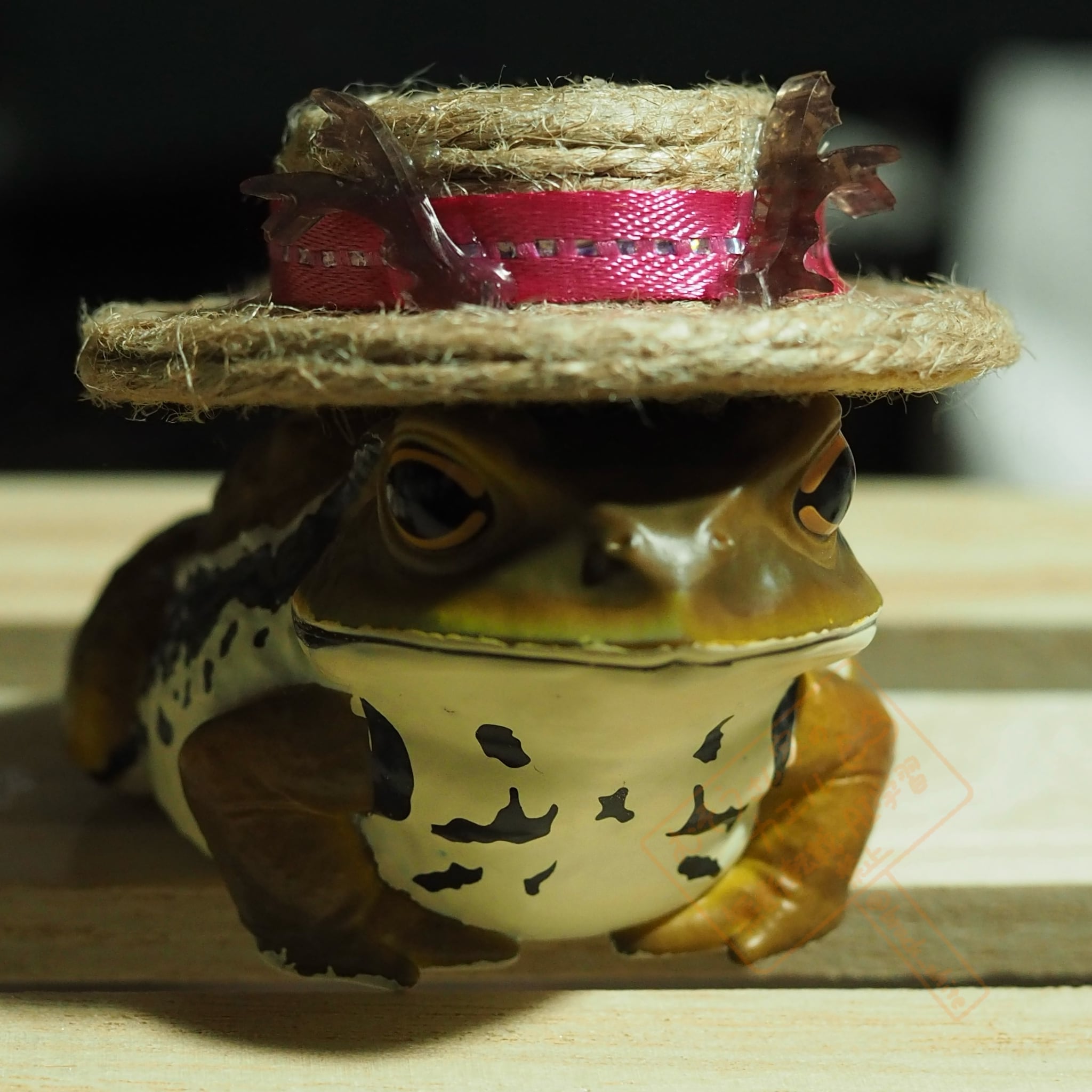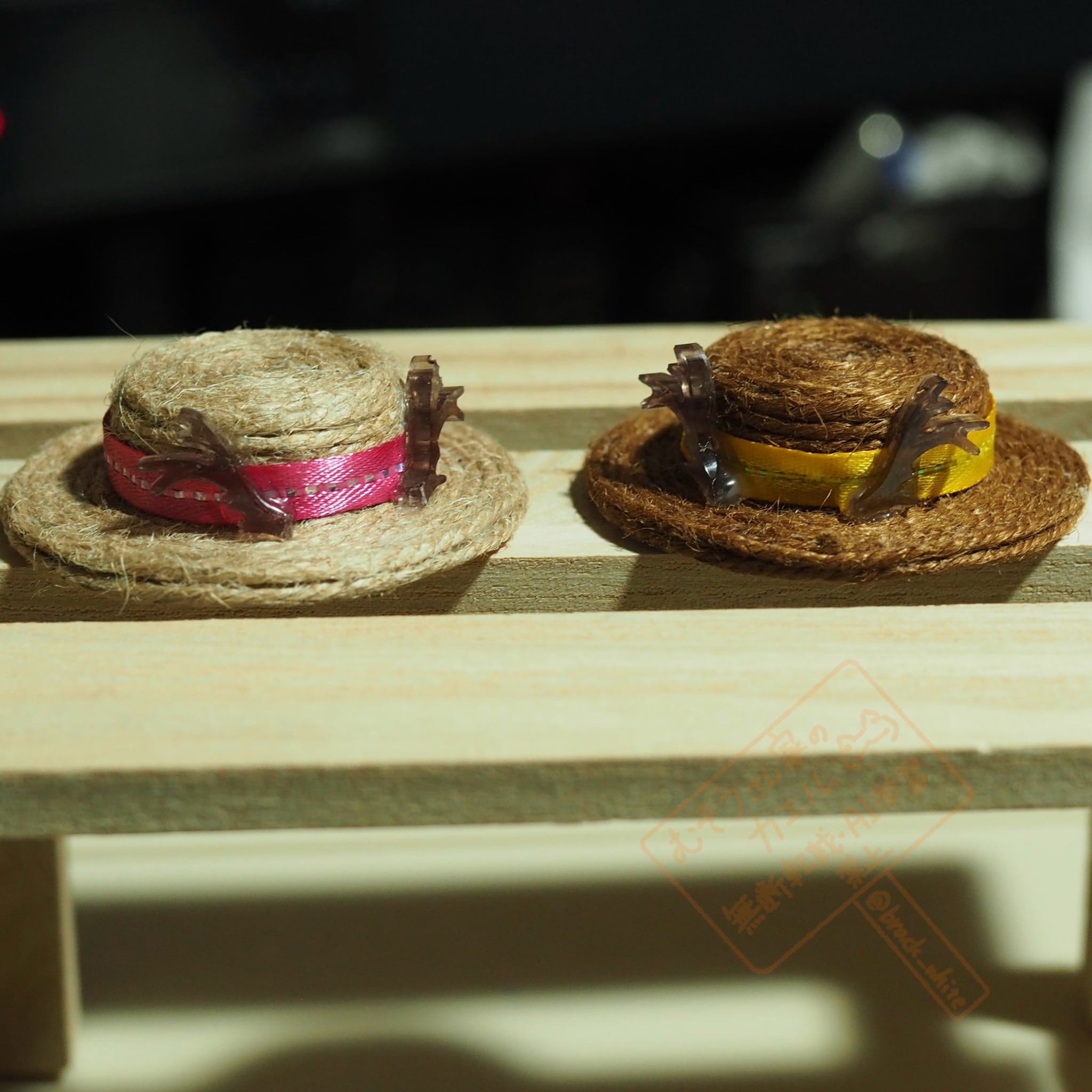 飾って良し、小動物に乗せて良しのかわいい麻紐でできたミニチュアサイズの麦わら帽子です。