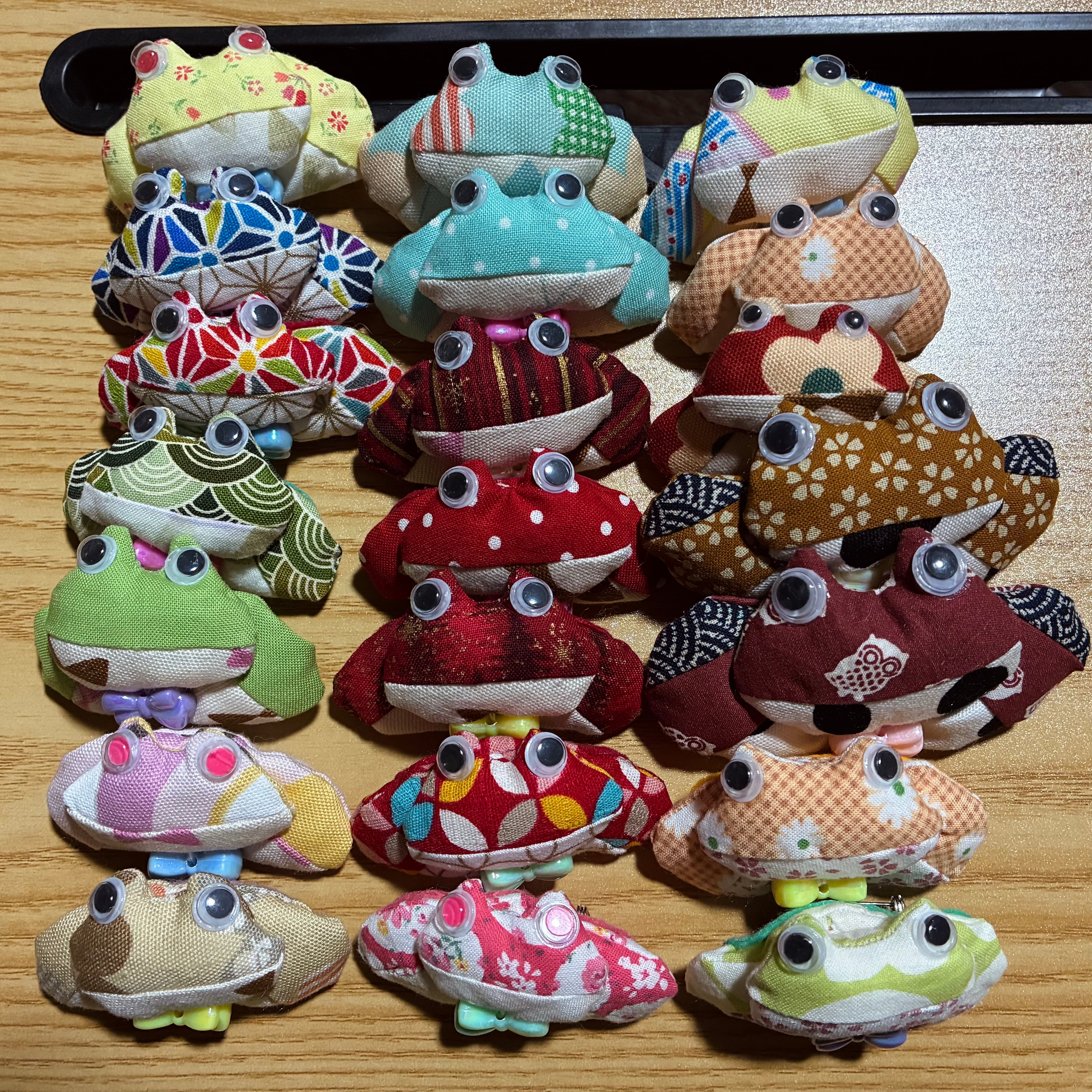 飾って良し、個性的なファッションアイテムとしても楽しめる、かわいい布でできたツノガエル・ヒキガエルブローチです。さまざまなシーンでお楽しみいただけるよう、軽やかな素材を使用しております。こちらの商品は装飾サイズ等を選べませんので、あらかじめご了承ください。数量限定での販売となっています!