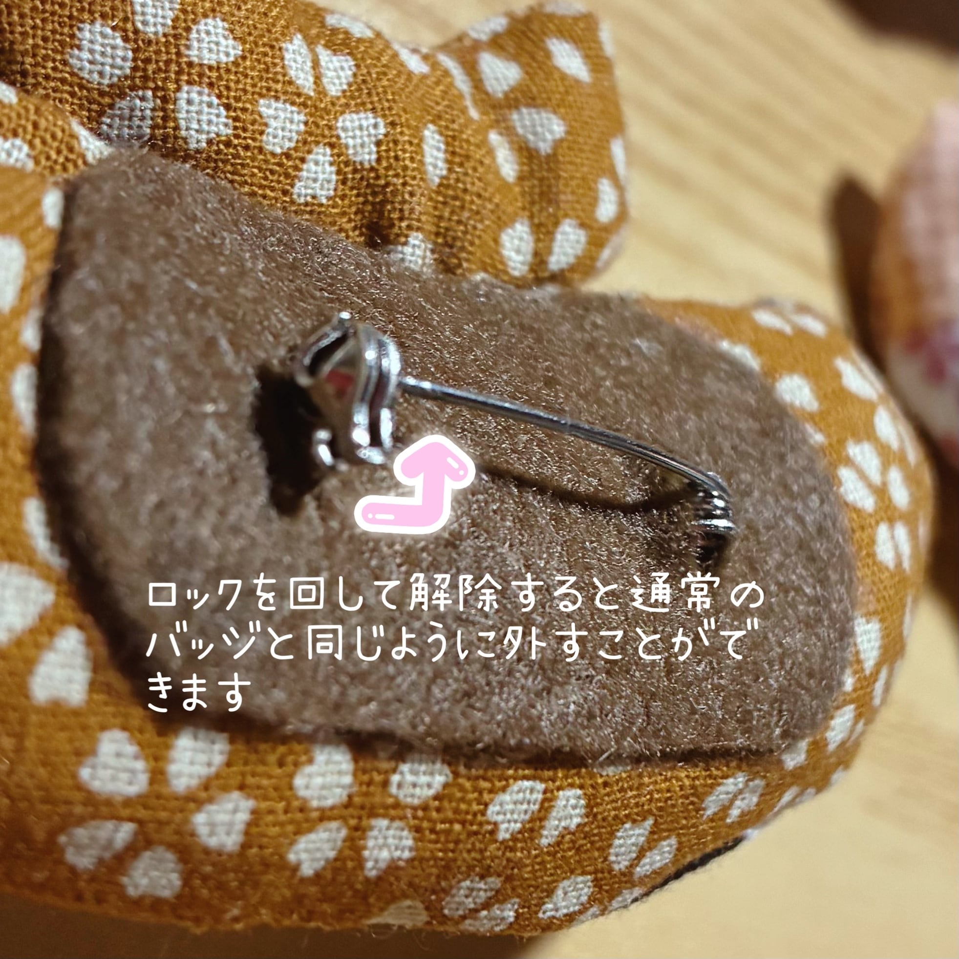 ・布、フェルト、ボンド、ブローチピンを使用し、手作りで製造しております。