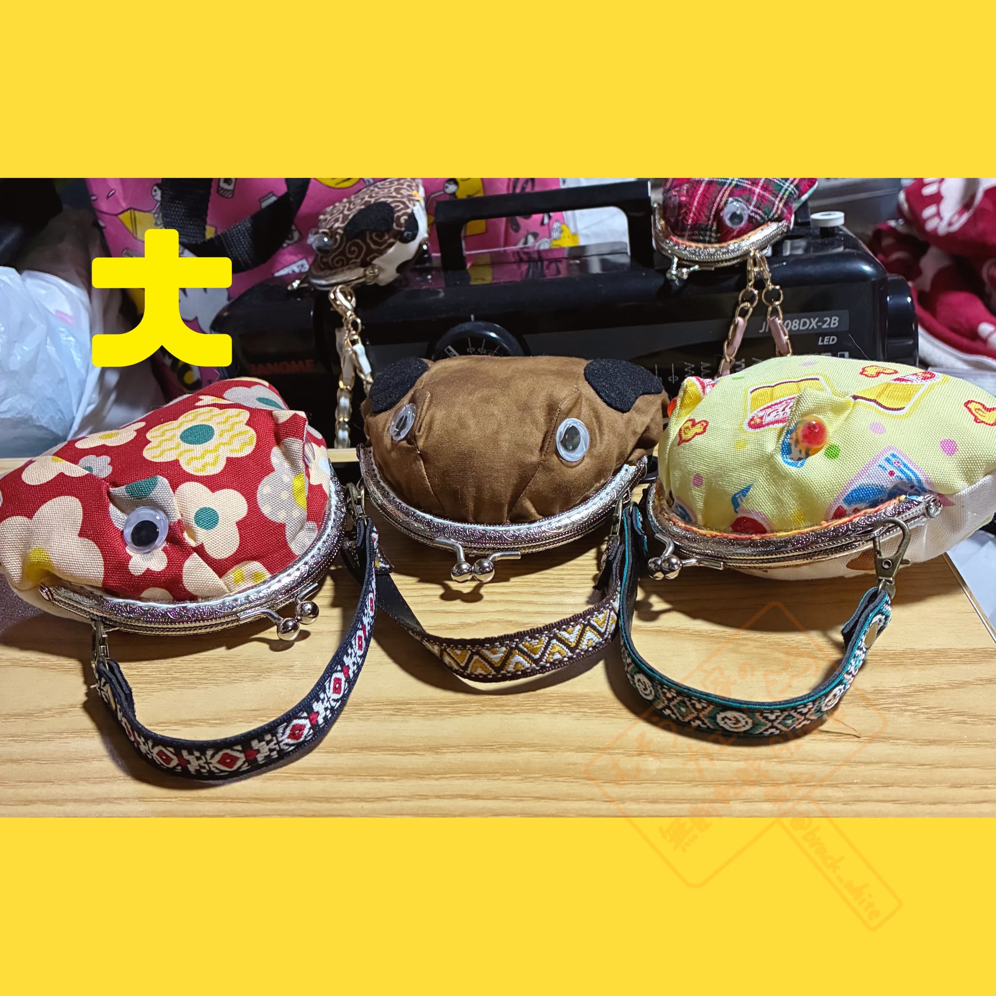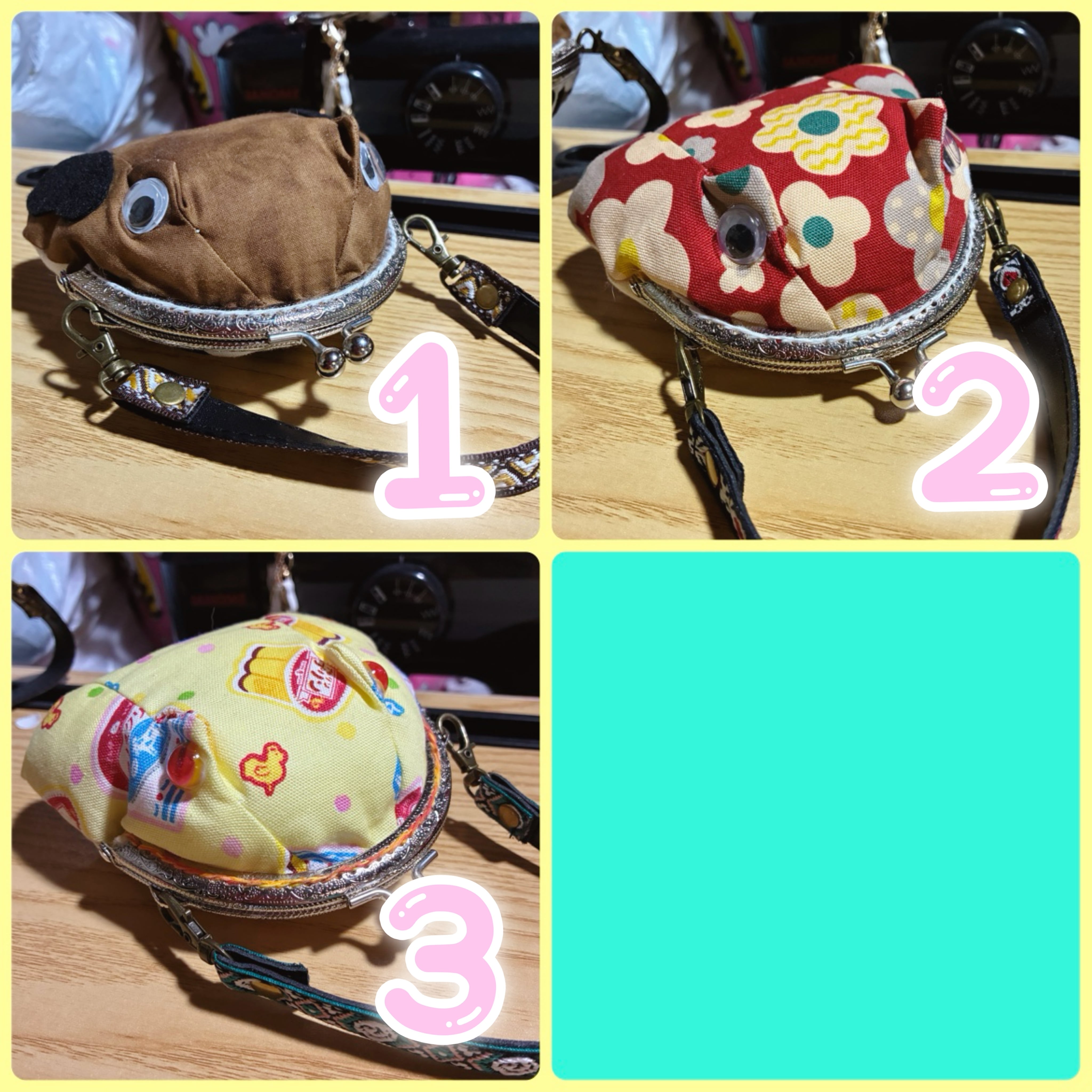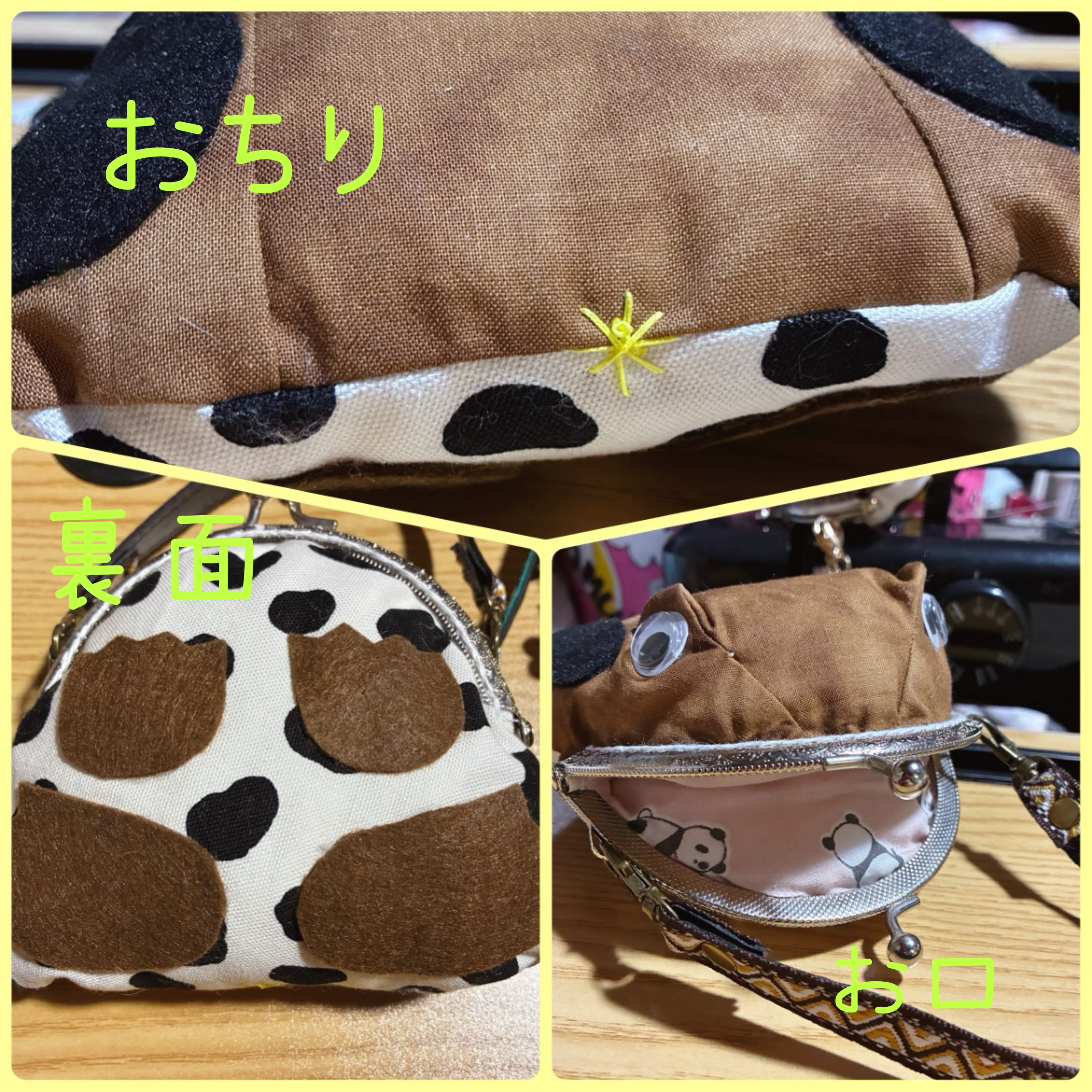 ・布、フェルト、ボンド、がま口口金等を使用し、手作りで製造しております。
